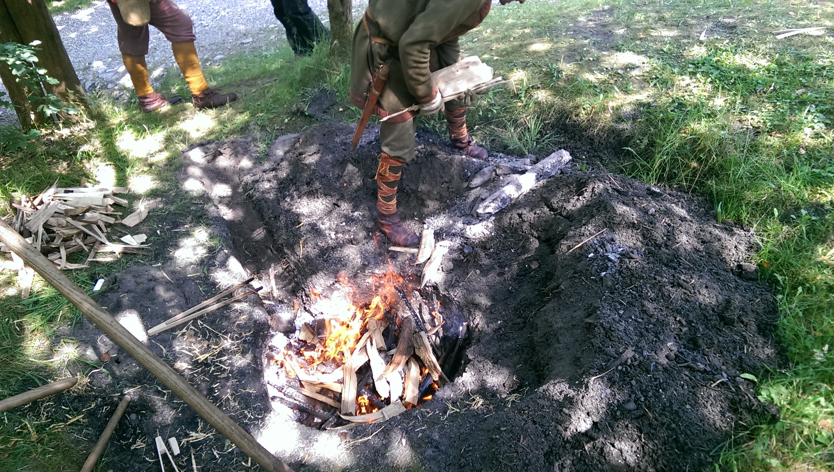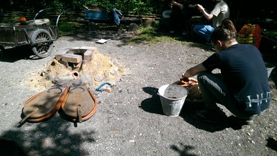 Die Schmiede wurde genutzt für Messerprojekte und neue Erdnägel, von Markus und Lukas, zusammen mit den Franken hatten wir einen erfolgreichen (100%!!!) Grubenbrand.