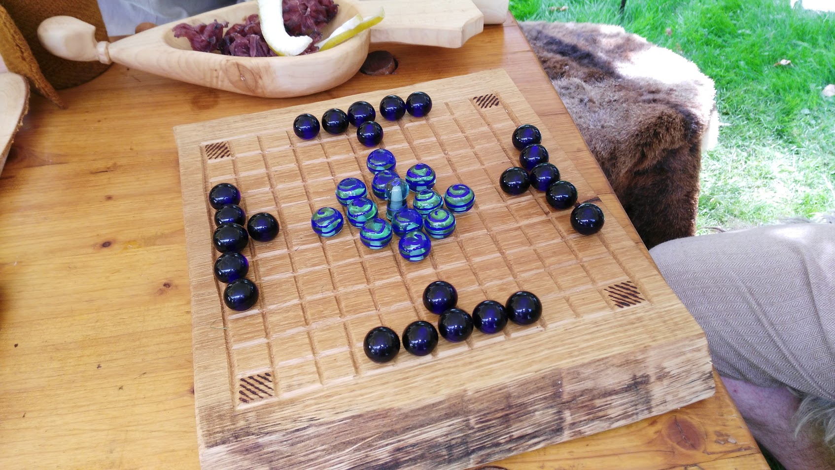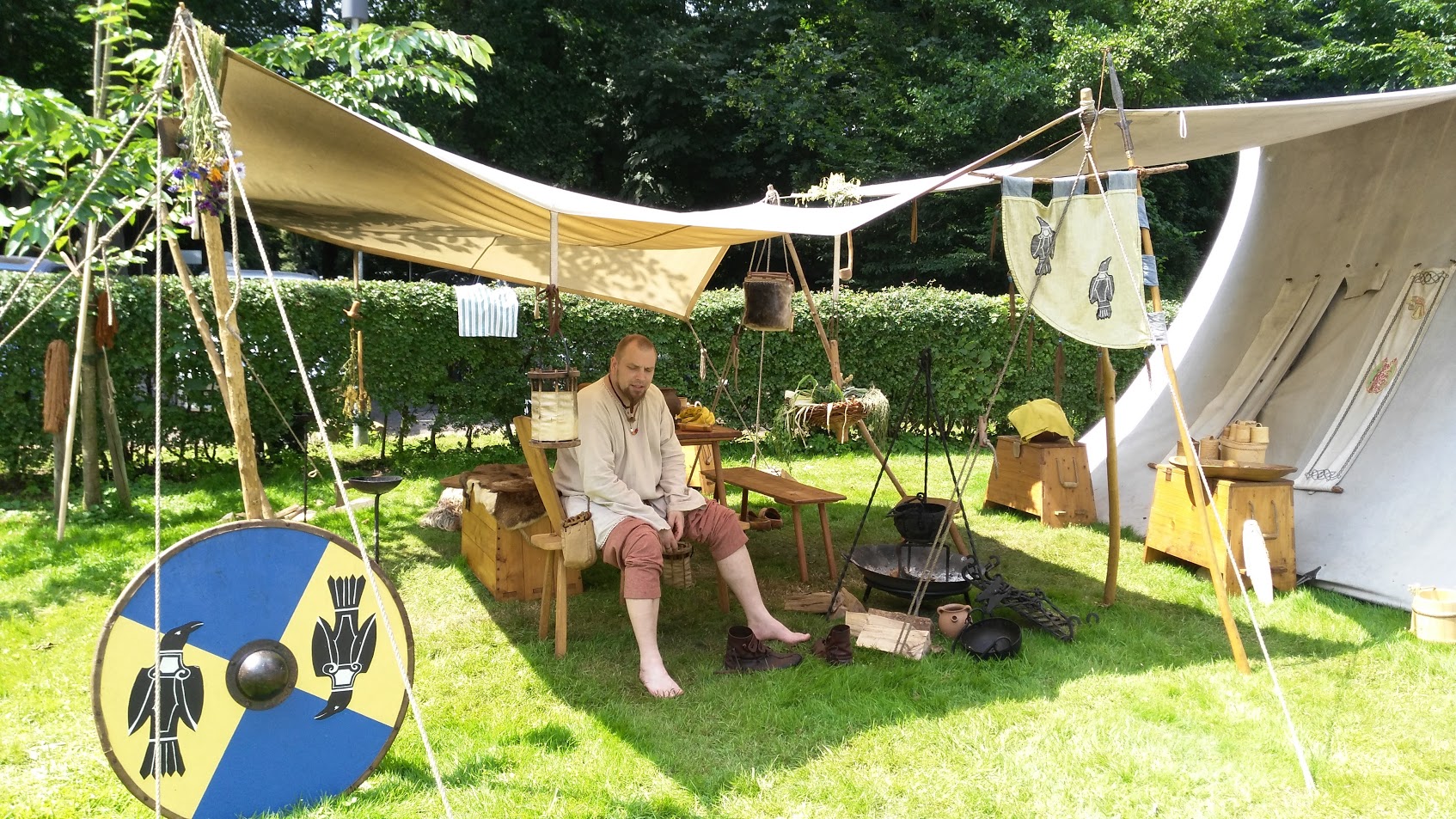 Kleinere Holz-und Näharbeiten und die Teilnahme an der Gewandshow machten den Markt für uns entspannt und schön. Auch in diesem Jahr wurden die Lager wieder