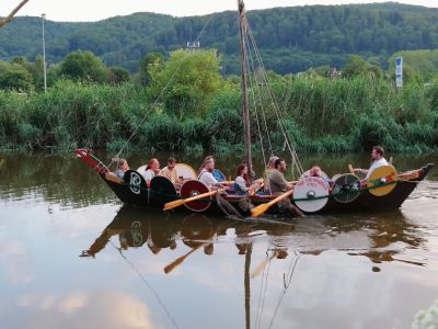 Das Wikingerschiff war ein zusätzliches Highlight auf diesem Markt, allerdings mit abenteuerlichen Fahrten, Mastbruch unter der Brücke und dann war das Wehr der Werra gefährlich nah!